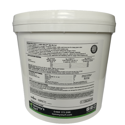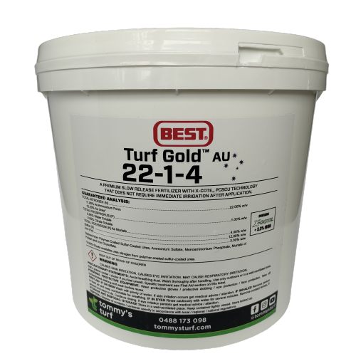 Turf Gold is a premium slow release granular lawn fertiliser that does not require immediate irrigation after application.